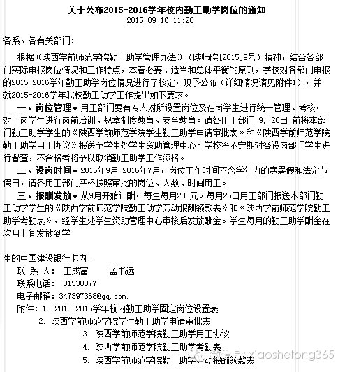 2015年陕西学前师范学院校内勤工助学岗位