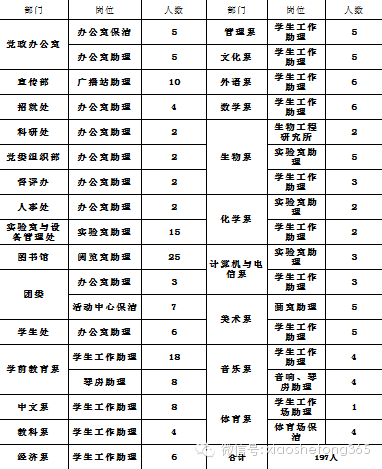 学院各部门勤工助学岗位设置: